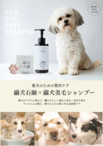 当社が飼育・管理するカイコの繭由来成分を配合し、愛犬の被毛と皮膚にやさしい処方に仕上げています。